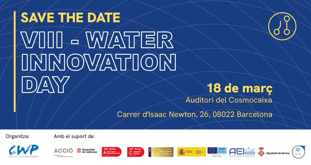 On February 20th, the Catalan Water Partnership will host a new edition of the Water Innovation Day, a flagship event aimed at fostering innovation, research, and knowledge transfer in the field of sustainable water management in Catalonia.