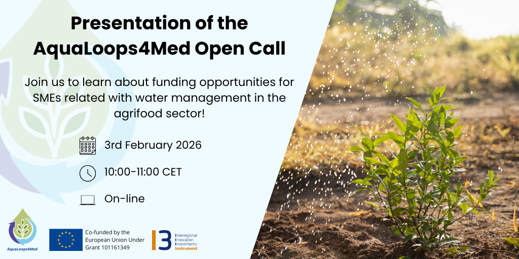 Descubre cómo las pymes de Cataluña, Basilicata, Ática y Tesalia pueden obtener hasta 60.000 € cada una para demostrar, escalar y llevar al mercado soluciones circulares del agua para el sector agroalimentario.