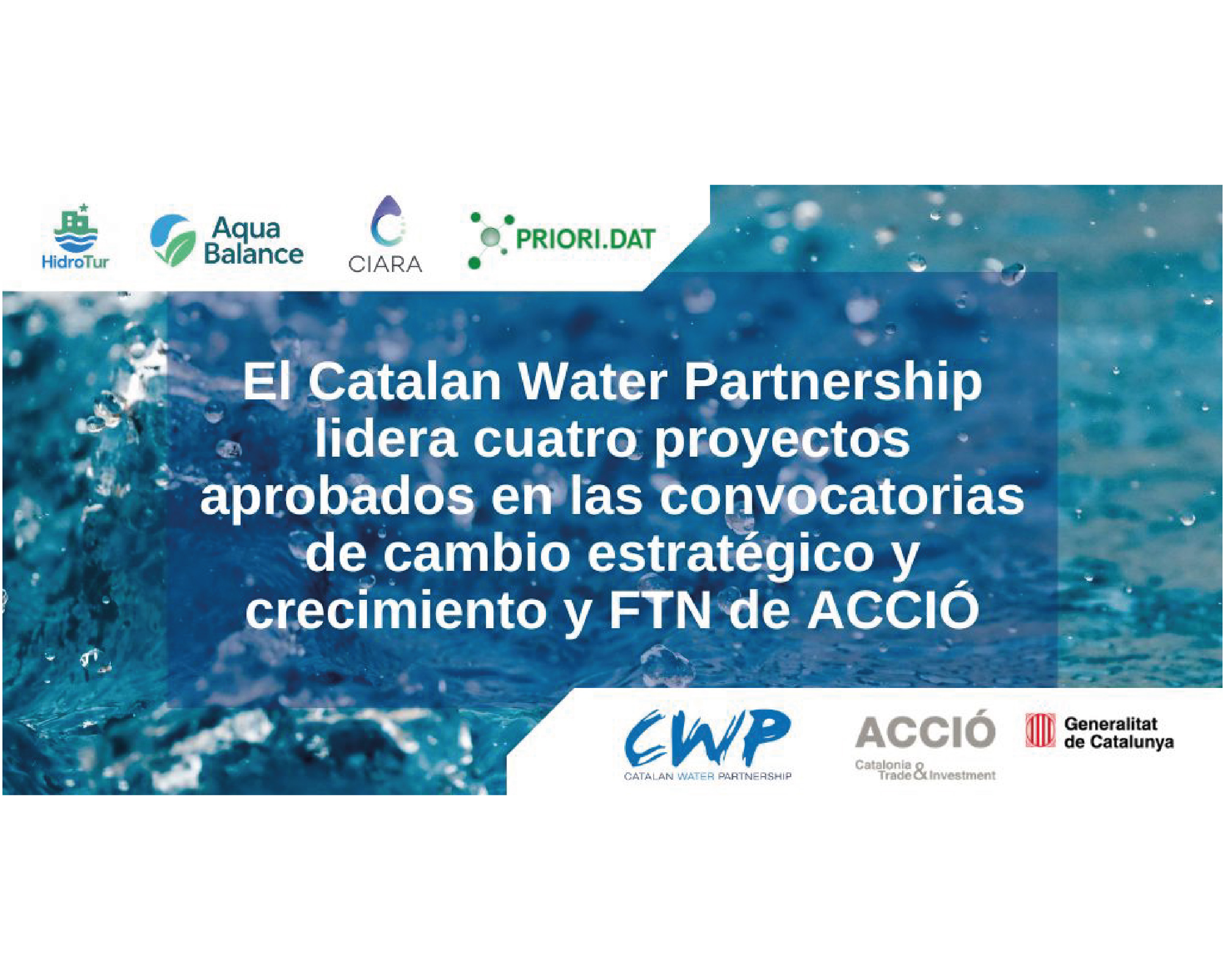 El Catalan Water Partnership lidera cuatro proyectos aprobados en las convocatorias de cambio estratégico y crecimiento y FTN de ACCIÓN
