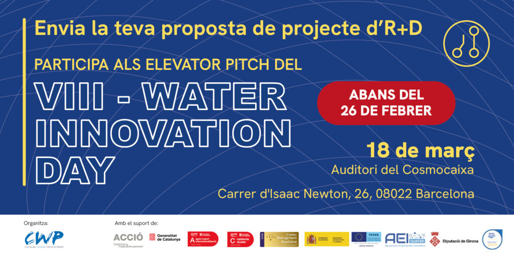 El pròxim 18 de març, el Catalan Water Partnership celebrarà una nova edició del Water Innovation Day, una jornada de referència per impulsar la innovació, la recerca i la transferència de coneixement en l’àmbit de la gestió sostenible de l’aigua a Catalunya.
